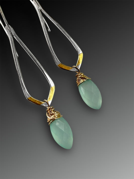 Aqua Chalcedony Earrings With 24k Gold Keum-Boo
