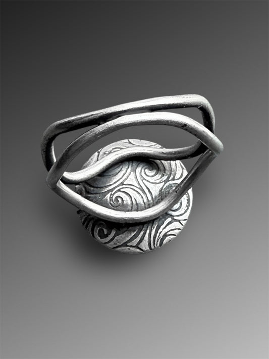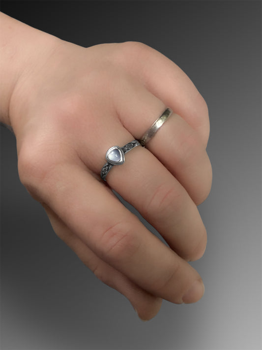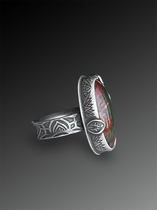 Chrome Chalcedony Ring with Flared Band, size 7.5, Artisanal Silver Jewelry, Slow-Made Goods, Art Jewelry, Hand Fabricated Handmade Metalwork
