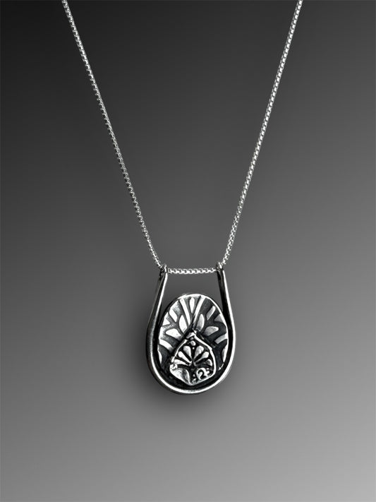 Blue Moonstone Domed Hollowform Medallion Necklace