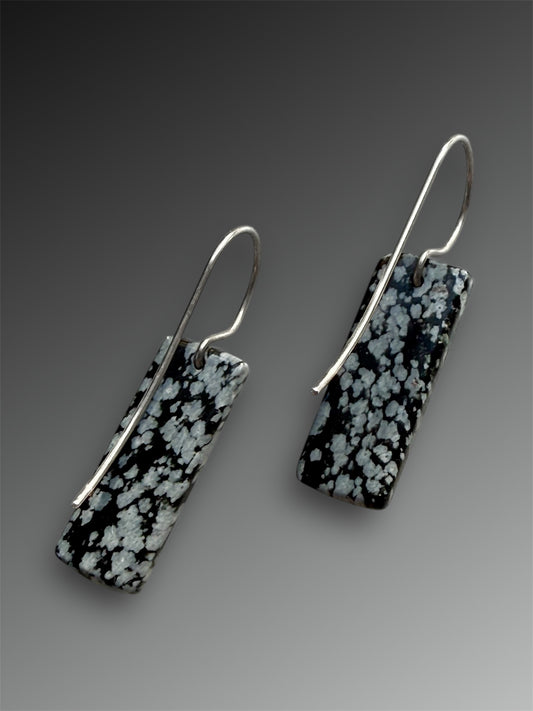 Snowflake Obsidian Stone Slice Earrings
