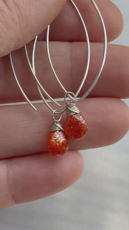 Sold outCrescent Hoop Earrings with Sunstone