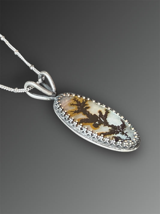 Dendritic Agate Necklace with Pierced Design on the Reverse