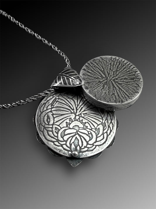 “Twilight Tree” Swivel Story Locket with White River Turquoise