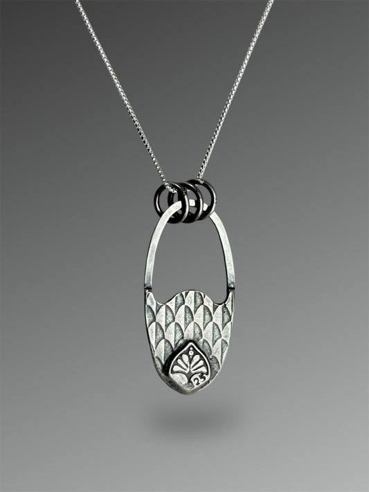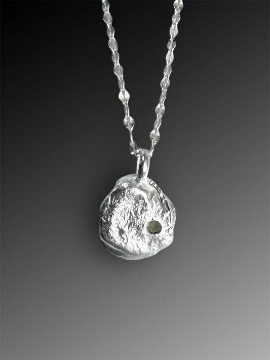 White Moonstone Hollow Form Pendant with Keum-Boo, Artisanal Silver Jewelry, Slow-Made Goods, Art Jewelry, Hand Fabricated Handmade Metalwork