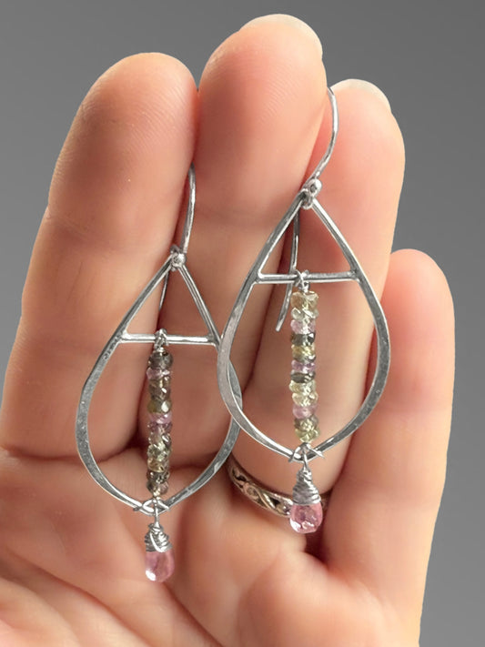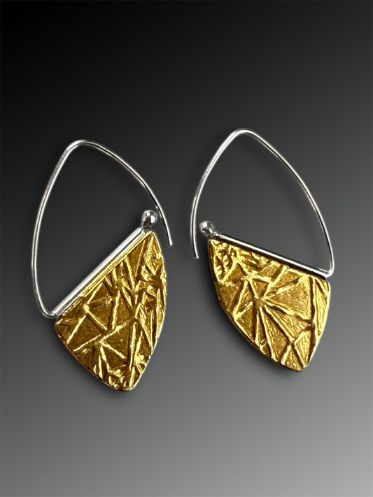 Reversible Hinged Leaf Earrings with 24k Gold and Rose Garden/Shattered Patterns