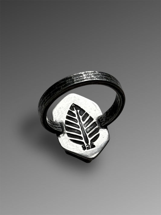 Moss Agate Ring with Heavy Flared Band, Size 7.75