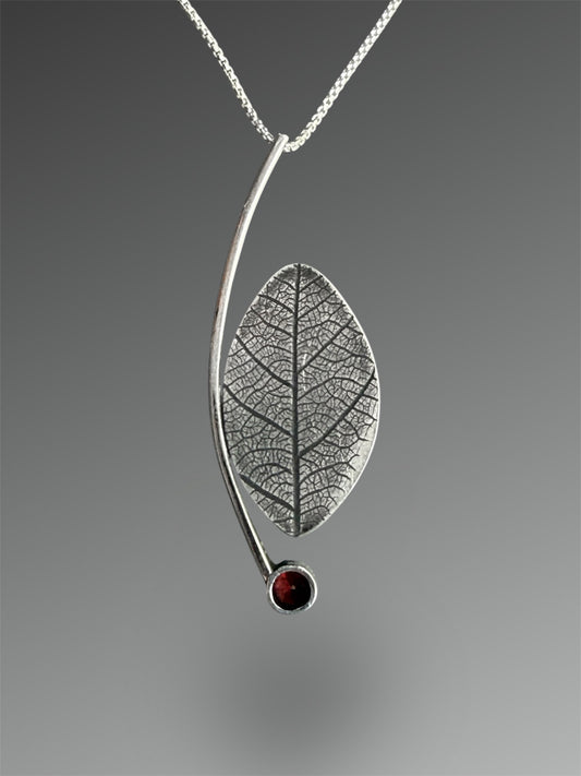 Crescent Curve Necklace with Fossilized Palm and Garnet
