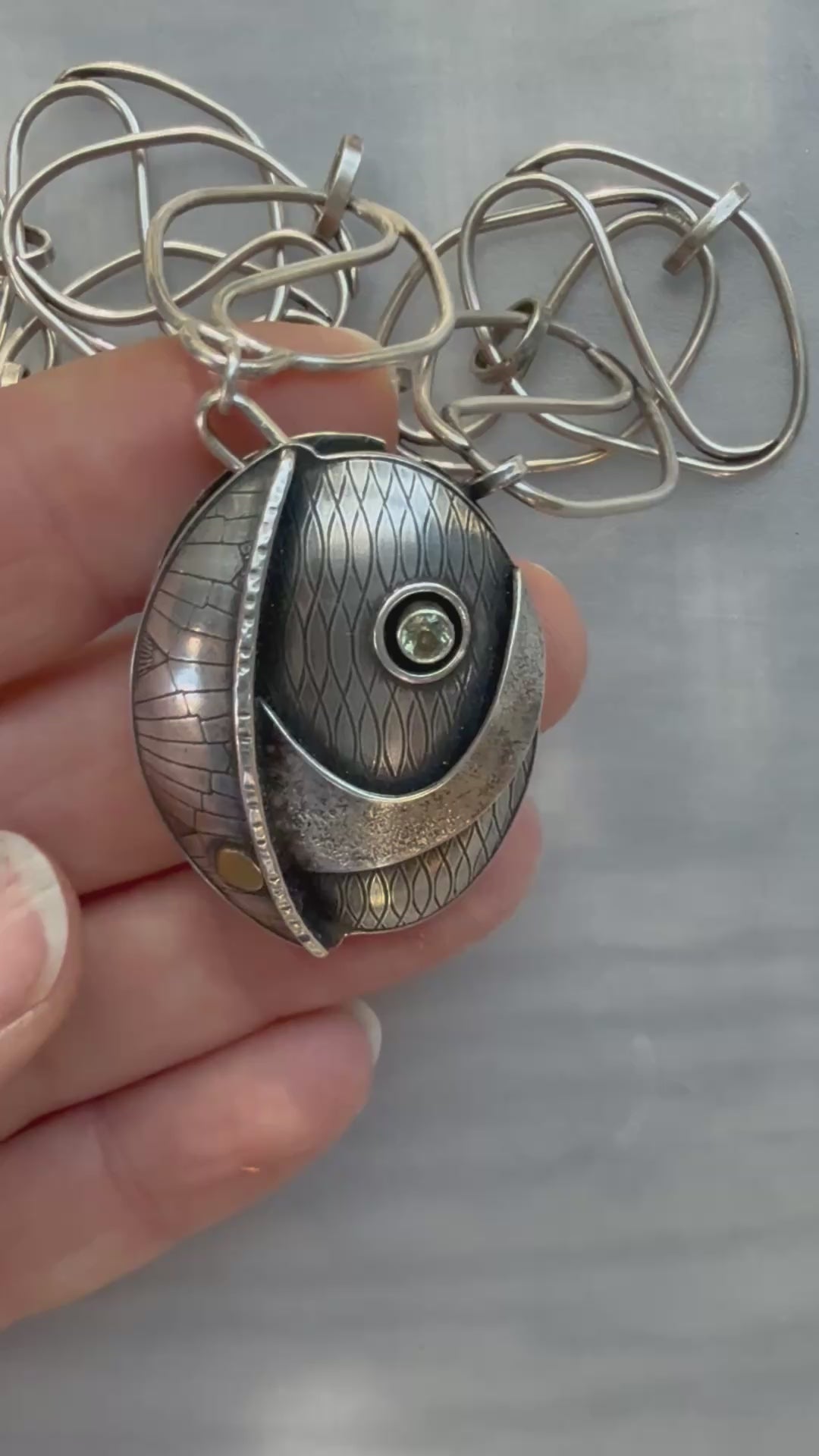 • This piece (including the chain) was made entirely by hand in my home studio with sterling silver, fine silver, and 18k gold.